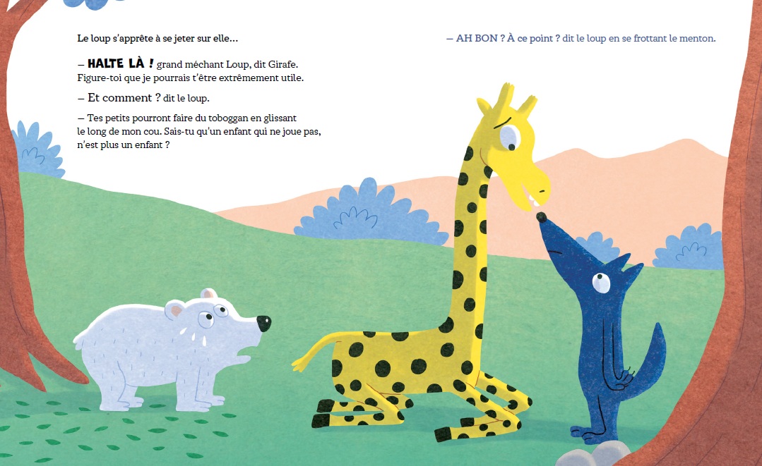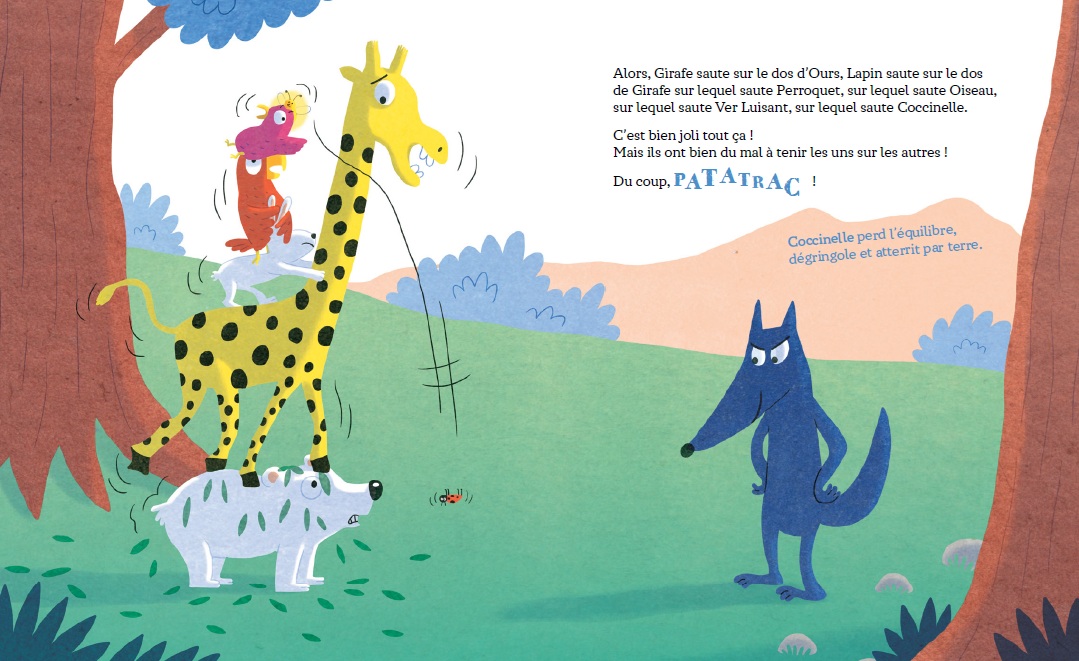 This morning, White Bear, Glowworm, Parrot, Giraffe, Ladybug, Rabbit, and Bird set off for the forest to play hide-and-seek. As they start the game, Wolf appears with its mouth wide open. Too late to run away! But the ingenious group of friends have not said their last word and come up with a clever escape strategy, leaving wolf rather…disconcerted!